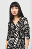Discover understated elegance with this Joseph Ribkoff creation, where contemporary design meets timeless sophistication. The interplay of striped and abstract motifs delivers visual intrigue, while subtle bohemian influences add depth to the silhouette. Tailored 3/4 sleeves flow into a refined bodycon cut that skims gracefully to midi length, creating a flattering, polished look. Perfect for elevated occasions or moments when you want to feel effortlessly put-together.