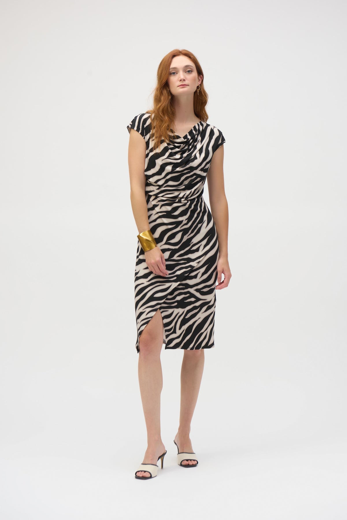 You’ll fall in love with this sheath wrap dress, designed to accentuate your best features. Crafted from luxurious silky knit in a stunning animal print, it showcases cap sleeves to highlight your shoulders, a flattering cowl neckline, and a perfectly tailored below-the-knee hemline.