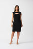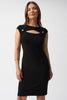Discover the perfect blend of minimalism and sophistication with this knee-length sheath dress from Joseph Ribkoff. Featuring a chic round-neck and trendy cap sleeves, this sleeveless dress boasts elegant buttons and a stylish cutout. Ideal for formal occasions or a night out, its plain pattern and sexy design make it a versatile wardrobe staple that exudes effortless charm.
