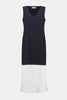 This gauze dress is the epitome of poise. Tailored in a sleeveless straight silhouette, the garment features a chic V-shape neckline with binding and sleek side slits at the hemline for added flair. The color-block print accentuates the piece’s classic design and irresistible appeal.