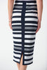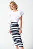 This Joseph Ribkoff elegant striped skirt is a masterpiece in sophistication and timeless style. This skirt embodies the essence of modern femininity with a touch of classic charm. Pair it with a crisp blouse for a polished office look or dress it up with a sleek top and heels for an evening out.