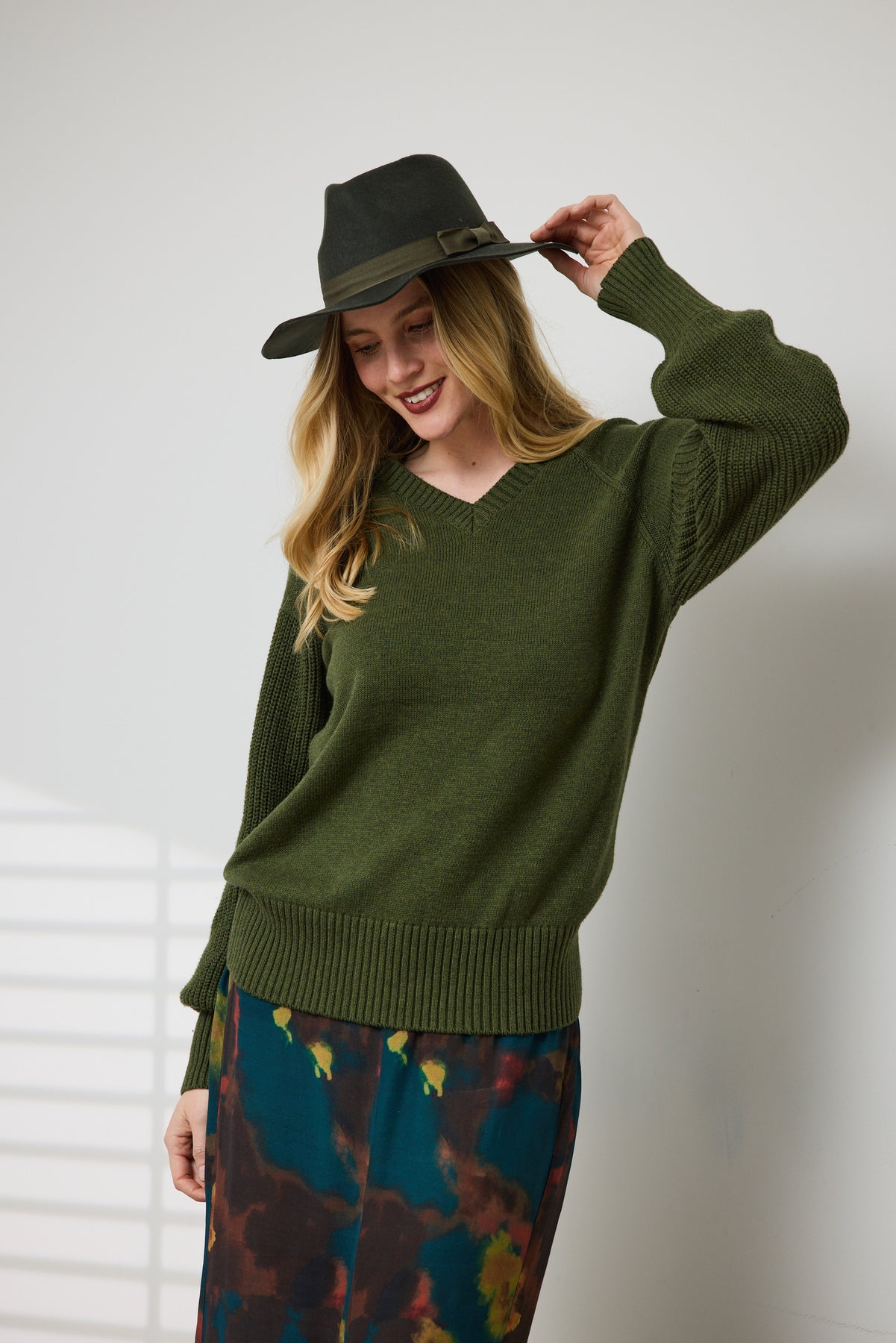 The Celia Jumper features a v-neck design and is made from a blend of cotton and cashmere. With its long sleeves and cable knit detailing, it adds a touch of elegance to any outfit. The raglan sleeves and rib cuffs provide a flattering fit, while the wide rib hem band means it pairs perfectly with pants or skirts.