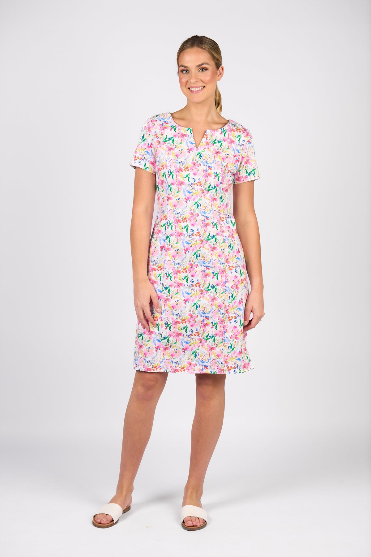 This printed, lightweight fitted dress with short sleeves is made from stretch cotton-elastane fabric for a comfortable, flattering fit.Featuring a small V-split at the round neckline and an invisible zip at the back, it showcases a timeless, classic silhouette.
