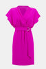 The essence of understated luxury, this wrap dress exudes confidence and poise. Every detail whispers elegance, from the D-ring adorned belt cinching the waist to the shirring that complements the silhouette. The short dolman butterfly sleeves add an airy feel to this lovely garment.