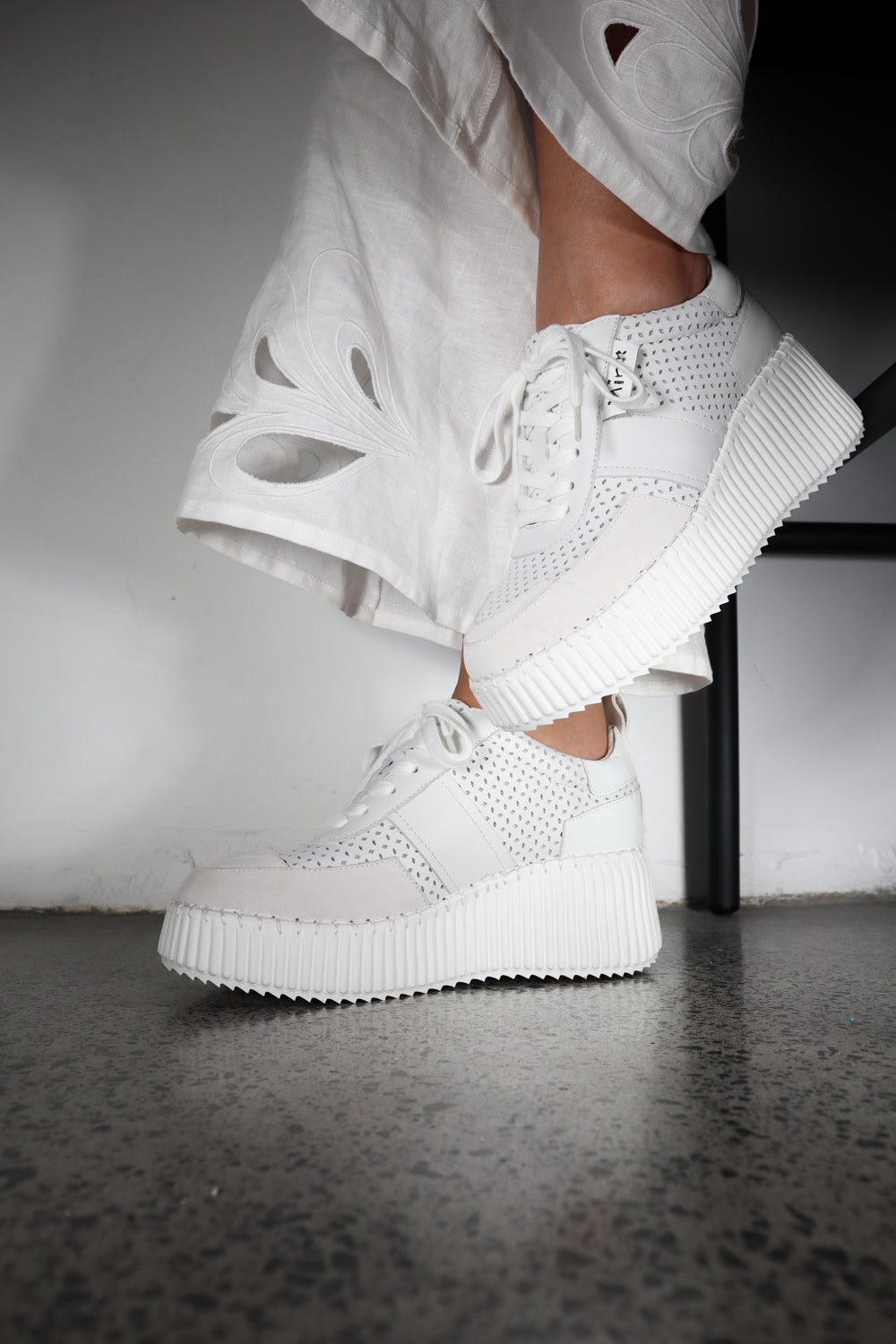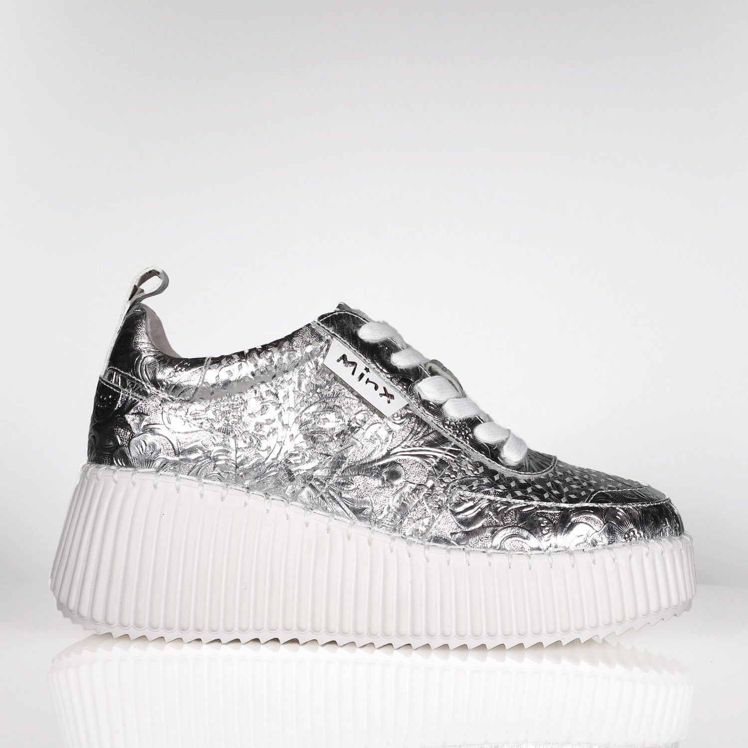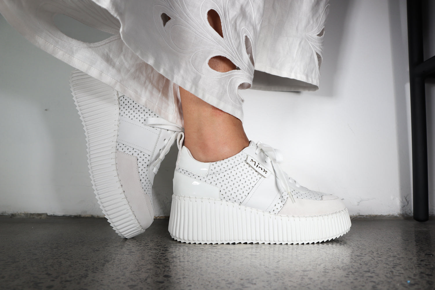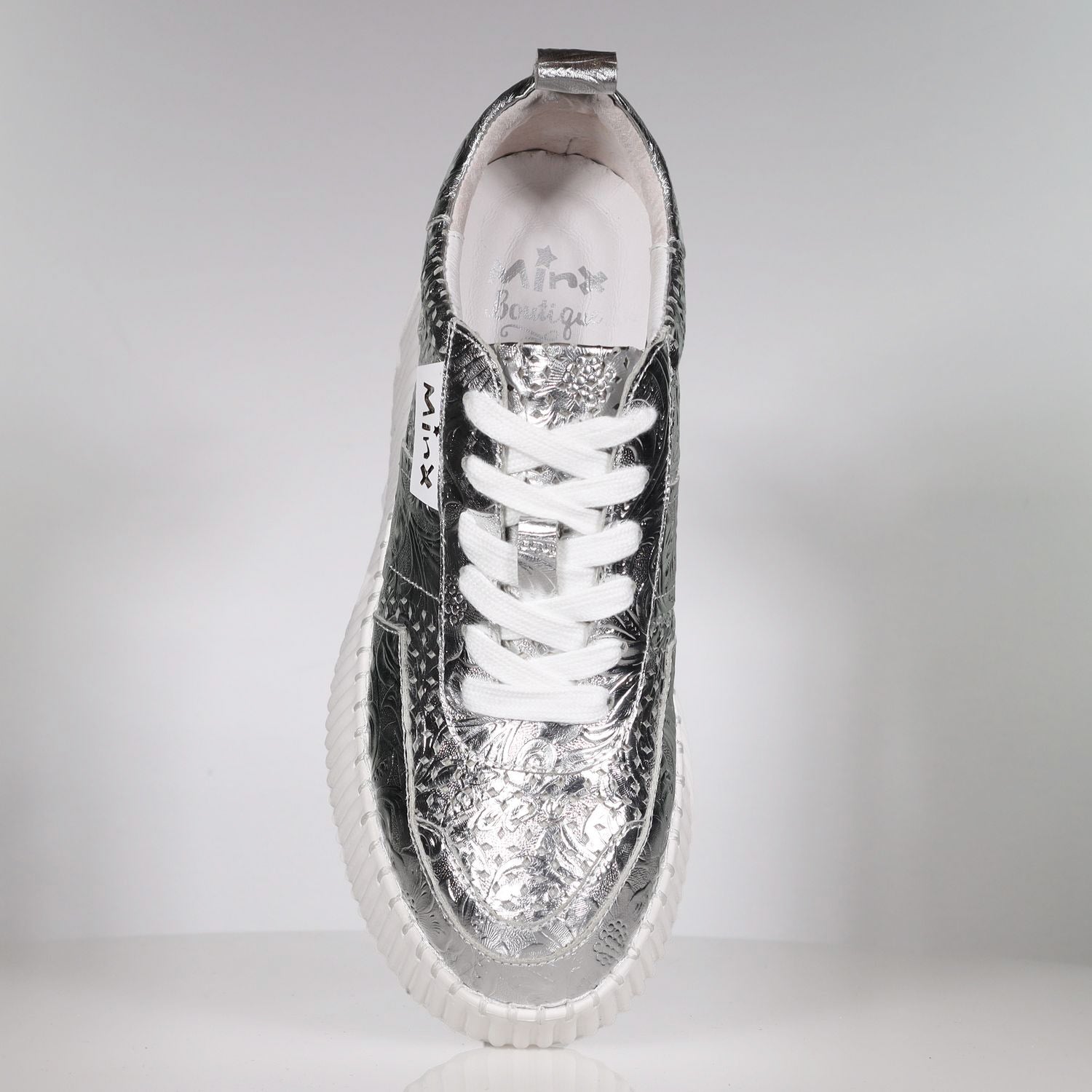 Racer Boost is your ultimate fusion of sporty edge and everyday cool. With a boosted sole for extra lift and a punchy profile that turns heads this sneaker is made to move. Keep it crisp in White Perf shine or Silver Floral Emboss. Light on your feet and big on style Racer Boost is here to power up your wardrobe and your stride.